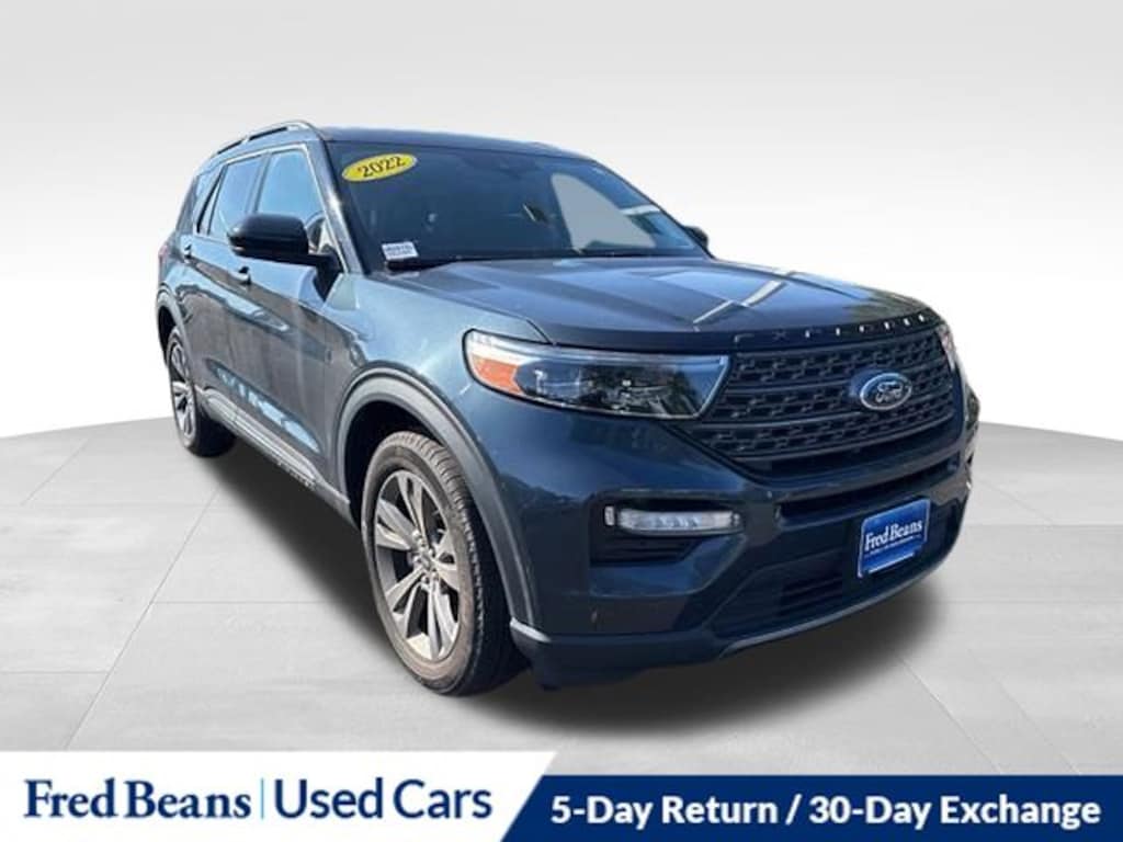 2022 Ford Explorer XLT 2.3L EcoBoost I-4 10-Speed Automatic 4WD 4D Sport Utility Stone Blue Metallic Bought & Serviced at Fred Beans, Local Trade, Great Service History, 3 Month / 4,000 Mile Comprehensive Warranty, Factory Certified Vehicle, Free First Oil Change, Auto Reward Program, 4WD.