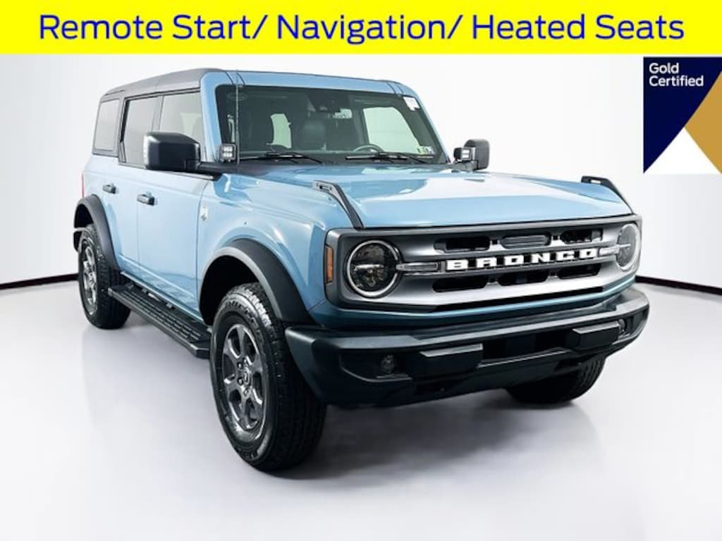 2023 Ford Bronco Big Bend 2.3L EcoBoost I-4 10-Speed Automatic 4WD 4D Sport Utility Area 51 Ford Gold Certified, 7 Year / 100k Powertrain Warranty, 12 Month / 12,000 Mile Comprehensive Warranty, 2-Door Intelligent Access w/Lock/Unlock, 3.73 Axle Ratio, ABS brakes, AM/FM radio: SiriusXM with 360L, Ambient Footwell Lighting, Auto-Dimming Interior Rear-View Mirror, Compass, Connected Navigation, Dr & Pass Illuminated Sliding Visor Vanity Mirrors, Dual-Zone Electronic Automatic Temperature Control, Electronic Stability Control, Enhanced Voice Recognition, Equipment Group 222A Mid Package, Exterior Parking Camera Rear, Front Bucket Seats, Front Row Heated Seats, Heated door mirrors, Illuminated entry, Low tire pressure warning, Navigation system: Connected Navigation, Power door mirrors, Power Outlet - Back Side of Center Floor Console, Power windows, Rear Parking Sensors, Remote keyless entry, Remote Start System, SiriusXM Radio w/360L, Speed control, SYNC 4, Tilt steering wheel, Traction control, Wheels: 17" Carbonized Gray-Painted Aluminum.