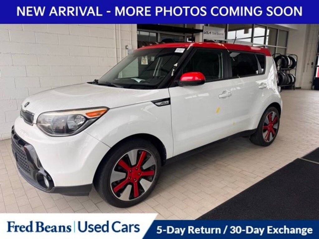 Recent Arrival! 2016 Kia Soul Plus I4 6-Speed Automatic FWD 4D Hatchback White w/Red Roof Kia CPO Lite Certified, 17" x 6.5J Alloy Wheels, 18" Alloy Wheels, 4-Wheel Disc Brakes, 6 Speakers, 6-Way Adjustable Driver's Seat, ABS brakes, Air Conditioning, Alloy wheels, AM/FM radio: SiriusXM, Brake assist, Bumpers: body-color, Carpeted Floor Mats, Designer's Package, Driver door bin, Driver vanity mirror, Dual front impact airbags, Dual front side impact airbags, Electronic Stability Control, Exterior Parking Camera Rear, Front anti-roll bar, Front Bucket Seats, Front Center Armrest, Front fog lights, Front reading lights, Front wheel independent suspension, Fully automatic headlights, Heated door mirrors, Illuminated entry, Leather-Wrapped Steering Wheel & Gearshift Knob, Low tire pressure warning, Occupant sensing airbag, Outside temperature display, Overhead airbag, Overhead console, Panic alarm, Passenger door bin, Passenger vanity mirror, Power door mirrors, Power steering, Power windows, Radio: AM/FM/MP3 Audio System, Rear seat center armrest, Rear window defroster, Rear window wiper, Remote keyless entry, Speed control, Speed-sensing steering, Split folding rear seat, Steering wheel mounted audio controls, Tachometer, Telescoping steering wheel, Tilt steering wheel, Traction control, Trip computer, Upgraded Cloth Seat Trim, Variably intermittent wipers.