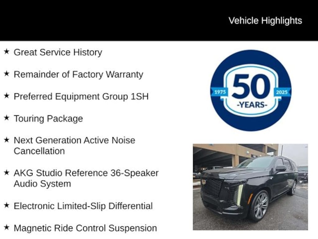 This exceptional Escalade is more than just a vehicle – it's a statement of refined taste and uncompromising quality. Experience the pinnacle of luxury and capability today. Contact us to schedule a test drive and discover why the 2025 Cadillac Escalade Sport Platinum is the ultimate choice for the discerning driver.