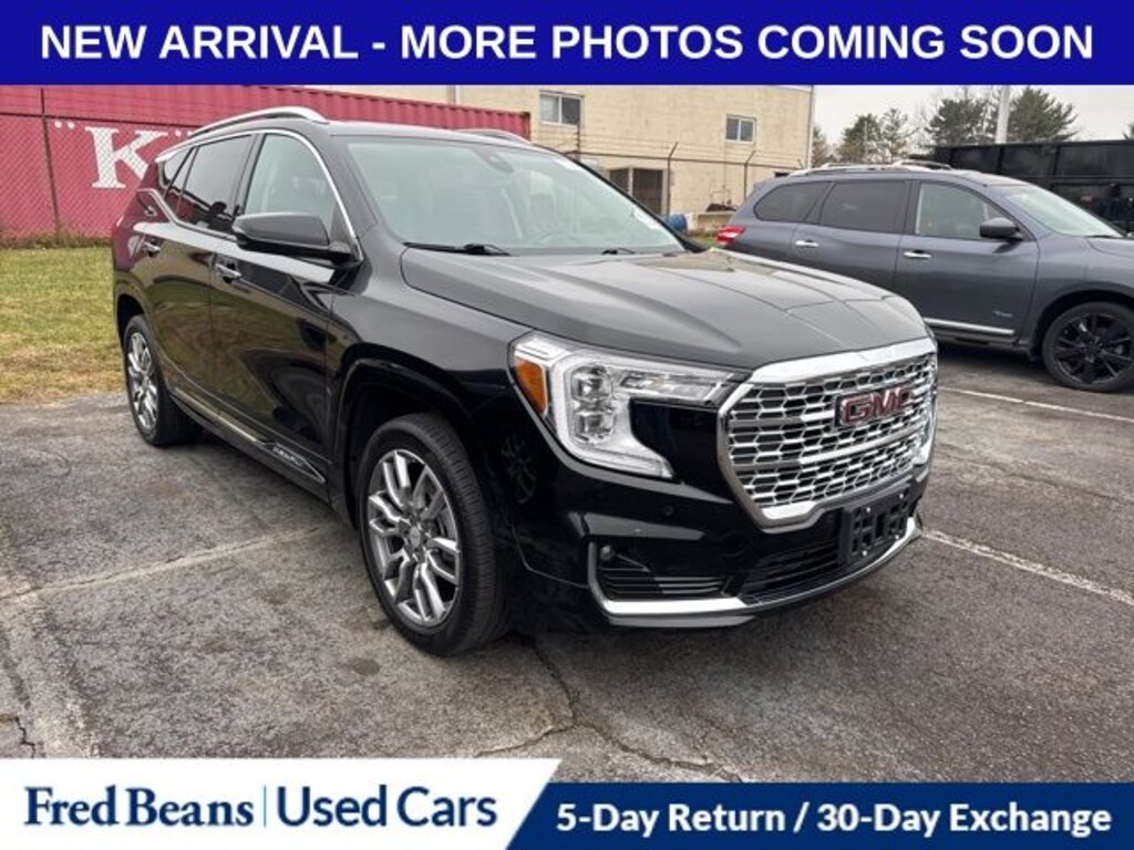 Recent Arrival! 2023 GMC Terrain Denali 1.5L DOHC 9-Speed Automatic AWD 4D Sport Utility Ebony Twilight Metallic AWD, 2 USB Data Ports, 2 USB Data Ports w/SD Card Reader, 3.47 Axle Ratio, 4-Wheel Disc Brakes, 6-Way Power Front Passenger Seat, 7 Speakers, 8-Way Power Driver Seat Adjuster, ABS brakes, Air Conditioning, Alloy wheels, AM/FM radio: SiriusXM, Auto High-beam Headlights, Auto-dimming Rear-View mirror, Automatic temperature control, Bluetooth® For Phone, Brake assist, Bumpers: body-color, Compass, Delay-off headlights, Driver & Front Passenger Heated Seats, Driver door bin, Driver vanity mirror, Dual front impact airbags, Dual front side impact airbags, Electronic Stability Control, Emergency communication system: OnStar and GMC connected services capable, Four wheel independent suspension, Front anti-roll bar, Front Bucket Seats, Front Center Armrest, Front dual zone A/C, Front fog lights, Front Passenger 2-Way Power Lumbar, Front reading lights, Fully automatic headlights, Garage door transmitter, Heads-Up Display, Heated door mirrors, Heated front seats, Heated steering wheel, Illuminated entry, Lane Departure Warning System, License Plate Front Mounting Package, Low tire pressure warning, Memory seat, Navigation system: GMC Connected Navigation, Occupant sensing airbag, Outside temperature display, Overhead airbag, Overhead console, Panic alarm, Passenger door bin, Passenger vanity mirror, Perforated Leather-Appointed Seat Trim, Power door mirrors, Power Driver Lumbar Control, Power driver seat, Power Liftgate, Power passenger seat, Power steering, Power windows, Preferred Equipment Group 5SA, Premium 7-Speaker Bose Sound System w/Amplifier, Radio data system, Radio: GMC Infotainment Audio System w/Navigation, Rear anti-roll bar, Rear seat center armrest, Rear window defroster, Rear window wiper, Remote keyless entry, Roof rack: rails only, Security system, SiriusXM Radio, Skyscape Power Sunroof w/Power Sunscreen, Speed control, Speed-sensing steering, Split folding rear seat, Spoiler, Steering wheel mounted audio controls, Tachometer, Telescoping steering wheel, Tilt steering wheel, Traction control, Trip computer, Turn signal indicator mirrors, Variably intermittent wipers, Wheels: 19" x 7.5" Bright Machined Aluminum, Wireless Apple CarPlay/Wireless Android Auto, AWD.