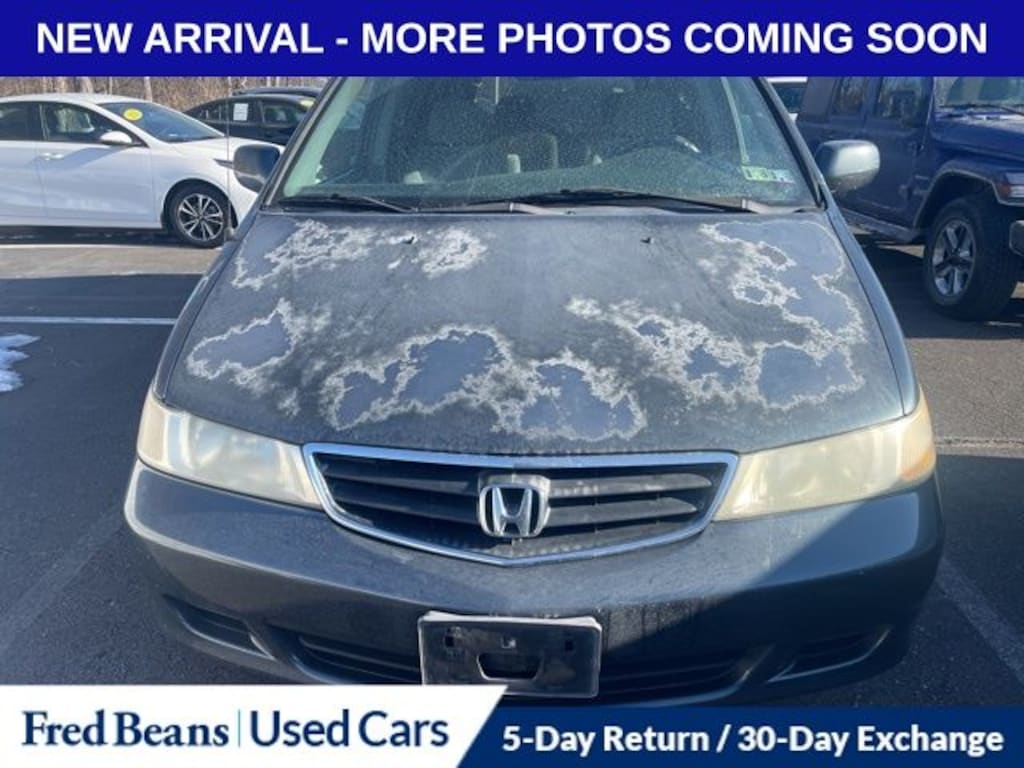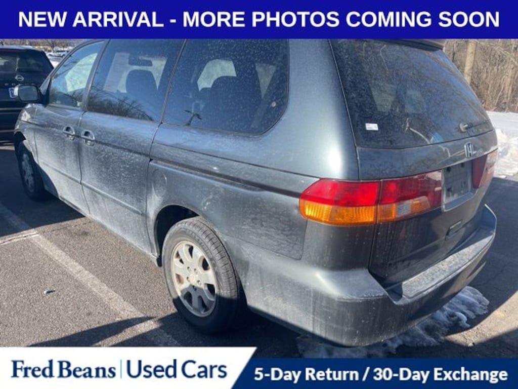 2003 Honda Odyssey EX 3.5L V6 SMPI SOHC 5-Speed Automatic with Overdrive FWD 4D Passenger Van Sage Brush Pearl Local Trade, Great Service History, AS-IS Vehicle, 16" x 6.5" Silver Alloy Wheels, AM/FM Stereo w/CD Player & 6 Speakers, Front Bucket Seats, Steering wheel mounted audio controls, Variably intermittent wipers.