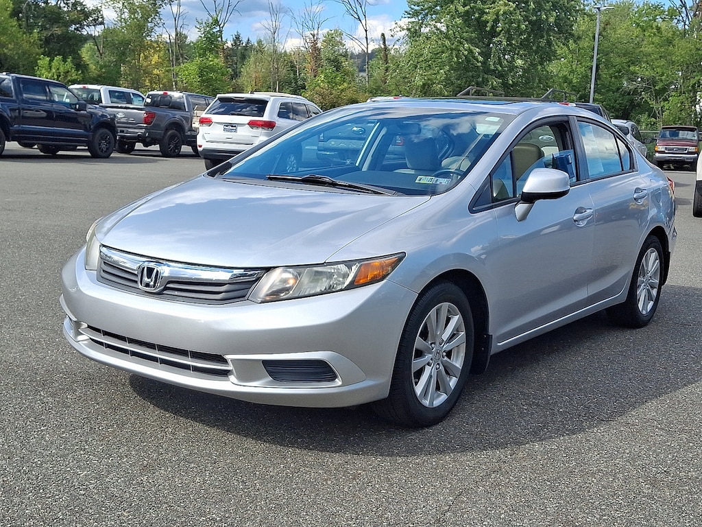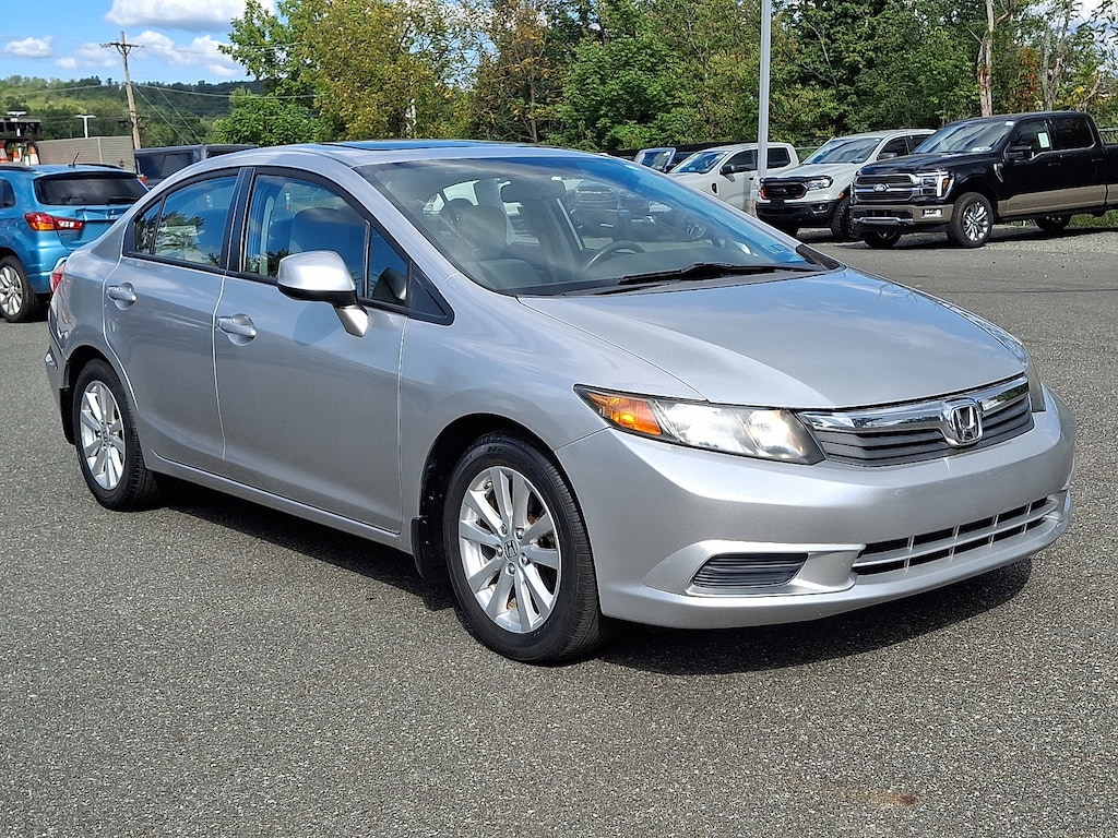 Recent Arrival! 2012 Honda Civic EX-L 1.8L 4-Cylinder 5-Speed Automatic FWD in Silver. Well-maintained local trade with great service history. Features include Gray Leather Seats, Heated Front Seats, Power Moonroof, Alloy Wheels, Automatic Headlights, CD Player, Power Windows, and Remote Keyless Entry.