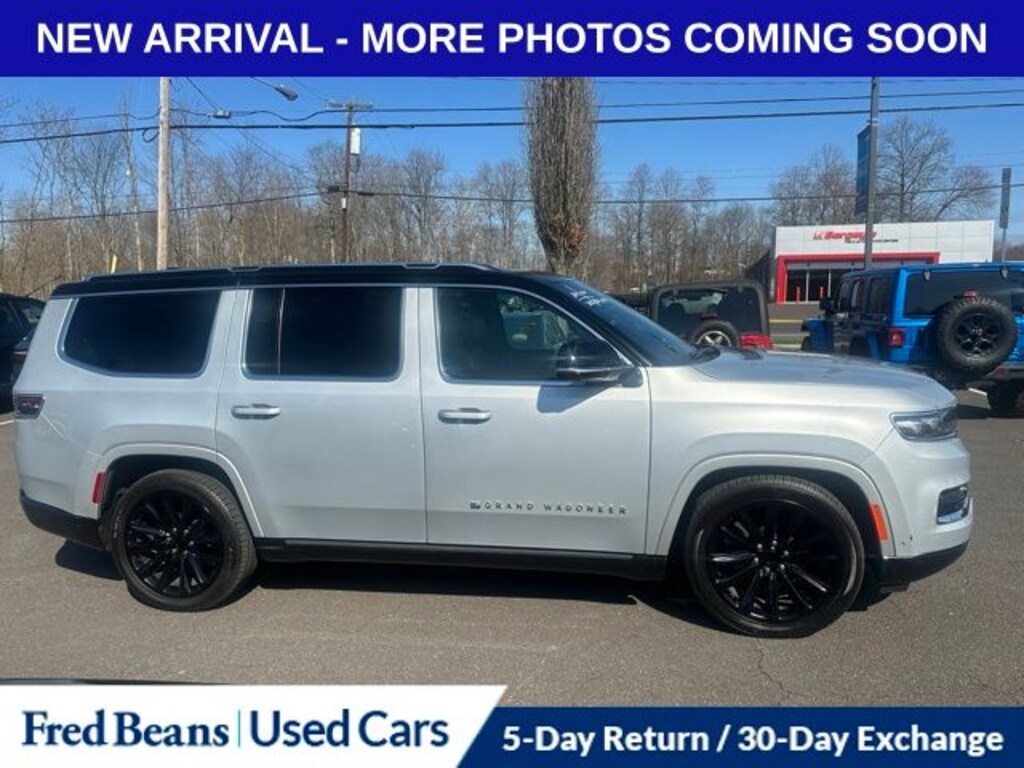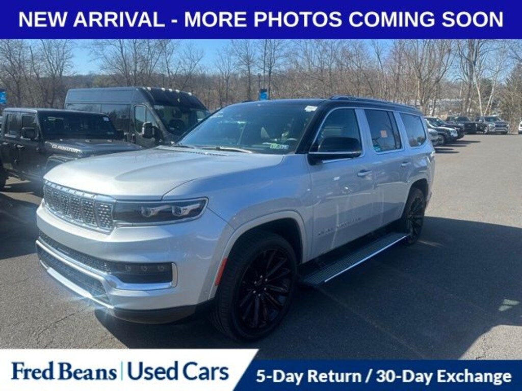 Recent Arrival! 2023 Jeep Grand Wagoneer Series II 3.0L I6 8-Speed Automatic 4WD 4D Sport Utility Silver Zynith Heated front seats, Heated rear seats, Heated steering wheel, Navigation System, Power Liftgate, Power moonroof, Quick Order Package 28S, Ventilated front seats.