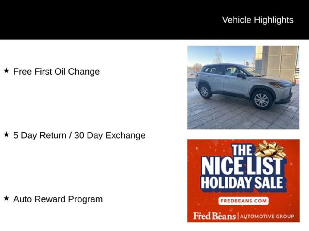 Recent Arrival! 2023 Toyota Corolla Cross L 2.0L I4 PDI DOHC 16V LEV3-SULEV30 169hp CVT AWD 4D Sport Utility Sonic Silver Free First Oil Change, 5 Day Return / 30 Day Exchange, Auto Reward Program, Corolla Cross L, 4D Sport Utility, 2.0L I4 PDI DOHC 16V LEV3-SULEV30 169hp, AWD, Sonic Silver, Light Gray w/Fabric Seat Trim.
