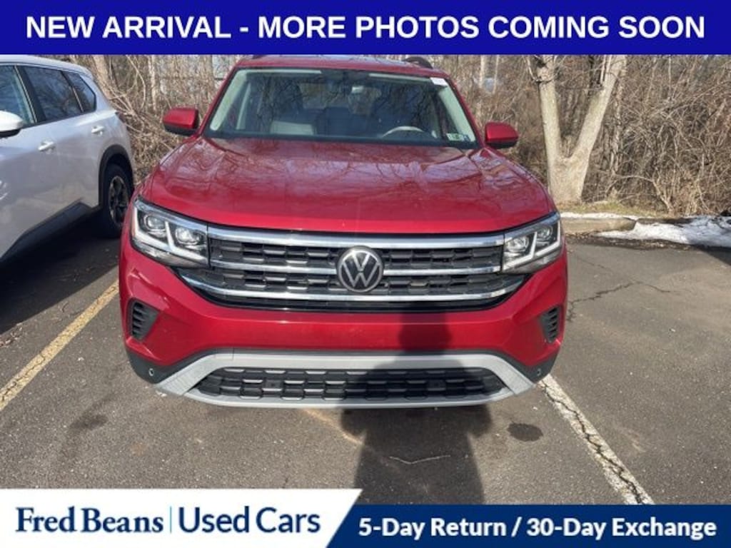 Recent Arrival! 2021 Volkswagen Atlas 2.0T SE w/Technology 2.0L TSI 8-Speed Automatic with Tiptronic FWD 4D Sport Utility Red Metallic Local Trade, Great Service History, AS-IS Vehicle, Auto Reward Program, Panoramic Sunroof, Panoramic Sunroof Package.