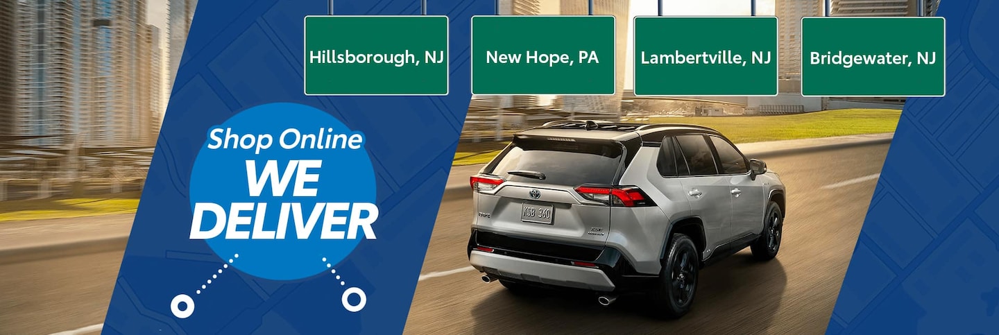 Are you ready to take car shopping to a whole new level with our new car delivery in or near NJ? The sales professionals at Fred Beans Toyota are excited to announce that we now have new car delivery services for Toyota cars, trucks, crossovers, and SUV models for clients in Hillsborough, New Hope, PA, Lambertville, and Bridgewater*. To keep the new car delivery process simple, all you have to do is: