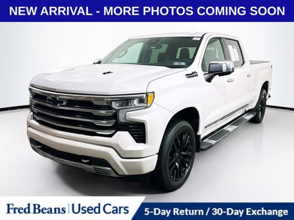 Discover the ultimate in truck luxury and capability with this stunning 2023 Chevrolet Silverado 1500 High Country. This meticulously maintained, factory-certified vehicle is the perfect blend of power, technology, and refined style, making it the ideal choice for discerning drivers seeking the very best.Boasting an impressive array of premium features, this Silverado High Country is equipped to elevate your driving experience. Key highlights include:- Remainder of Factory Warranty- Factory Certified Vehicle- 5 Day Return / 30 Day Exchange- Auto Reward Program- 22 High Gloss Black Wheels (LPO)- Cat-Back Performance Exhaust (LPO)- Hard-Folding Tonneau Cover (LPO)- High Country Premium Package- Dark Essentials Package (LPO)Step inside and you'll be greeted by a wealth of advanced technology and convenience features, including a 12.3 Multicolor Reconfigurable Digital Display, Wireless Charging, Surround Vision, and a Bose Premium Audio System. The cabin is adorned with premium materials, including genuine wood accents and perforated leather seating, ensuring a truly luxurious driving experience.Beneath the hood, this Silverado 1500 High Country is powered by the impressive EcoTec3 6.2L V8 engine, delivering an exceptional balance of power and efficiency. With 420 horsepower and 460 lb-ft of torque, you'll have the muscle to tackle any task with ease, whether it's hauling heavy loads or conquering the open road.Adaptive Ride Control Suspension and the Multi-Flex Tailgate further enhance the Silverado's capabilities, providing a smooth, comfortable ride and unparalleled versatility. The Trailering Package and Integrated Trailer Brake Controller make towing a breeze, while the Hitch Guidance and Trailer Camera Provisions ensure you can maneuver with confidence.Safety and driver assistance technologies are also well-represented, with features like Forward Collision Alert, Automatic Emergency Braking, Lane Keep Assist, and Rear Cross Traffic Alert keeping you and your loved ones protected on every journey.This 2023 Chevrolet Silverado 1500 High Country is a true testament to the brand's commitment to excellence. With its uncompromising quality, cutting-edge features, and exceptional performance, it's the ultimate truck for those who demand the very best. Experience the difference for yourself by scheduling a test drive today.